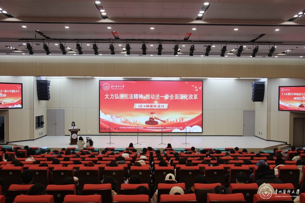 “中华人民共和国公民在行使自由和权利的时候,不得损害国家的、社会的、集体的利益和其他公民的合法的自由和权利。”医学人文学院学生代表带领全体参会师生开展宪法晨读,诵读《中华人民共和国宪法》部分条款,在场每一位贵医学子在潜移默化中,增强了自身对宪法的认同感与归属感,厚植知法学法、爱党爱国的情怀。