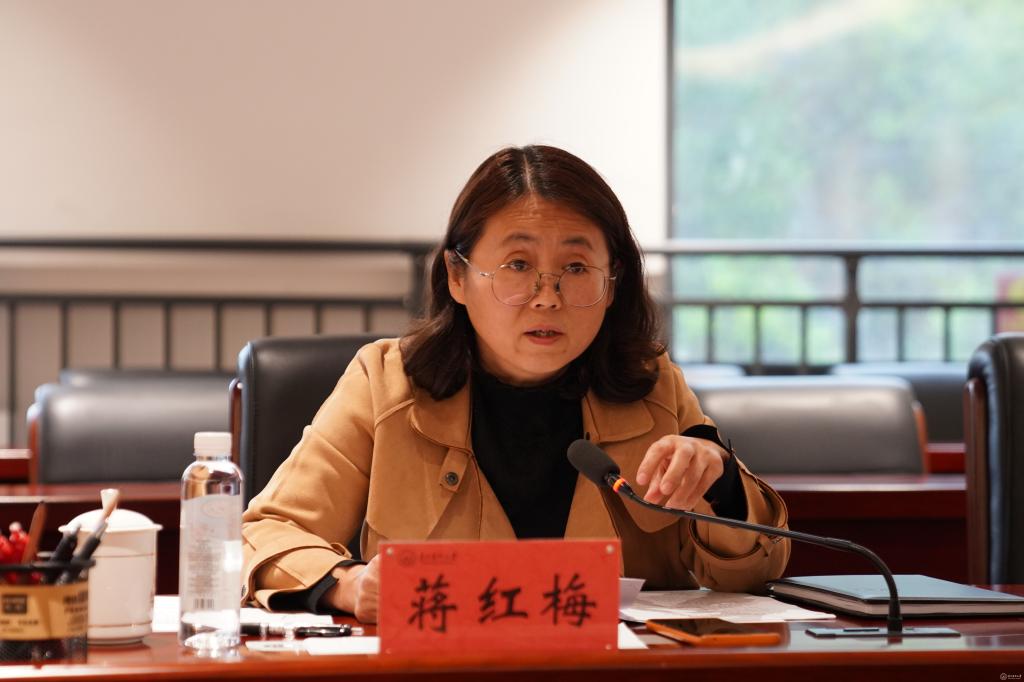 蒋红梅介绍学校评建工作领导小组及办公室成员,并对评建办公室提出具体工作任务、工作纪律。她强调,各小组要抓紧落实各个工作环节,按照“一个中心、一根时间轴、三条任务线、三个工作层面”总要求,明确岗位责任和任务分工,严格按照要求高质量推进审核评估工作,确保圆满完成各项评建工作。