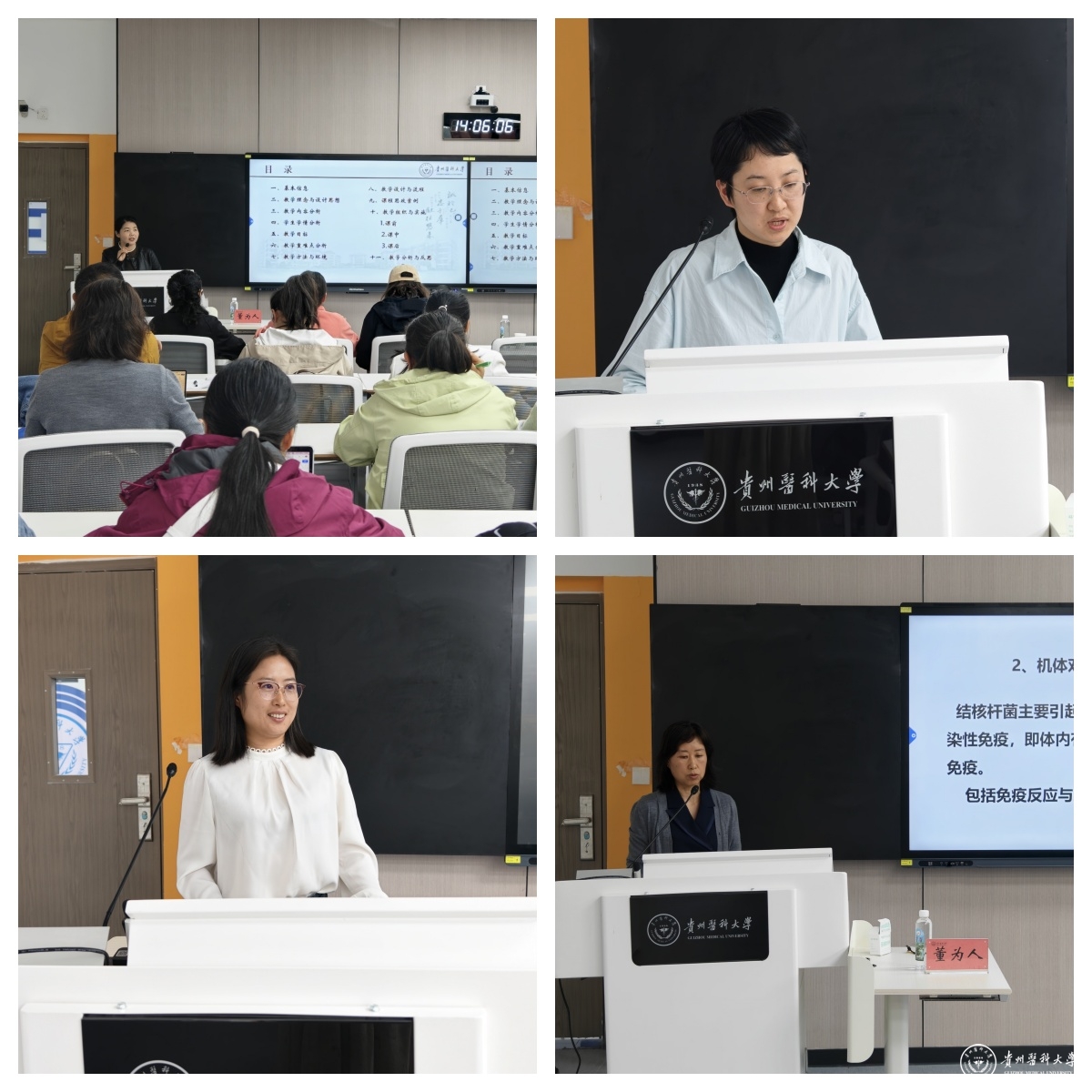 培训中,学校基础医学院楚丽丽、李容瑢,临床医学院唐连涛、刘艳洁,分别以机能学实验、组织学与胚胎学、内科学、病理学4门课程为教学设计说课案例进行了汇报与展示。