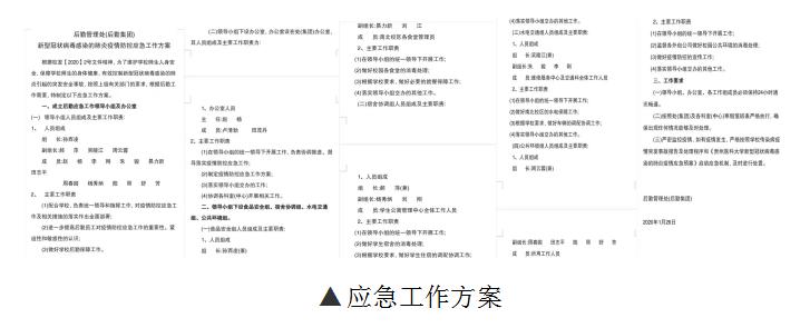 面对疫情的严峻形势,后勤管理处(后勤集团)坚决贯彻学校会议精神和部署,制定后勤应急工作方案。后勤领导干部以身作则,将责任落实到组到人,充分发挥后勤党员干部先锋模范作用,强化了全体职工的责任担当意识。