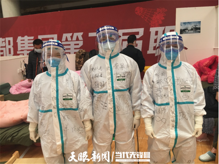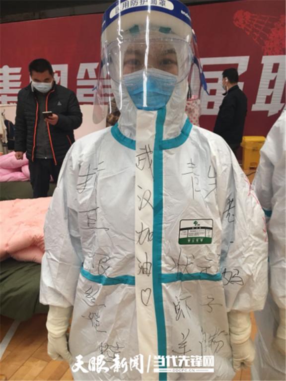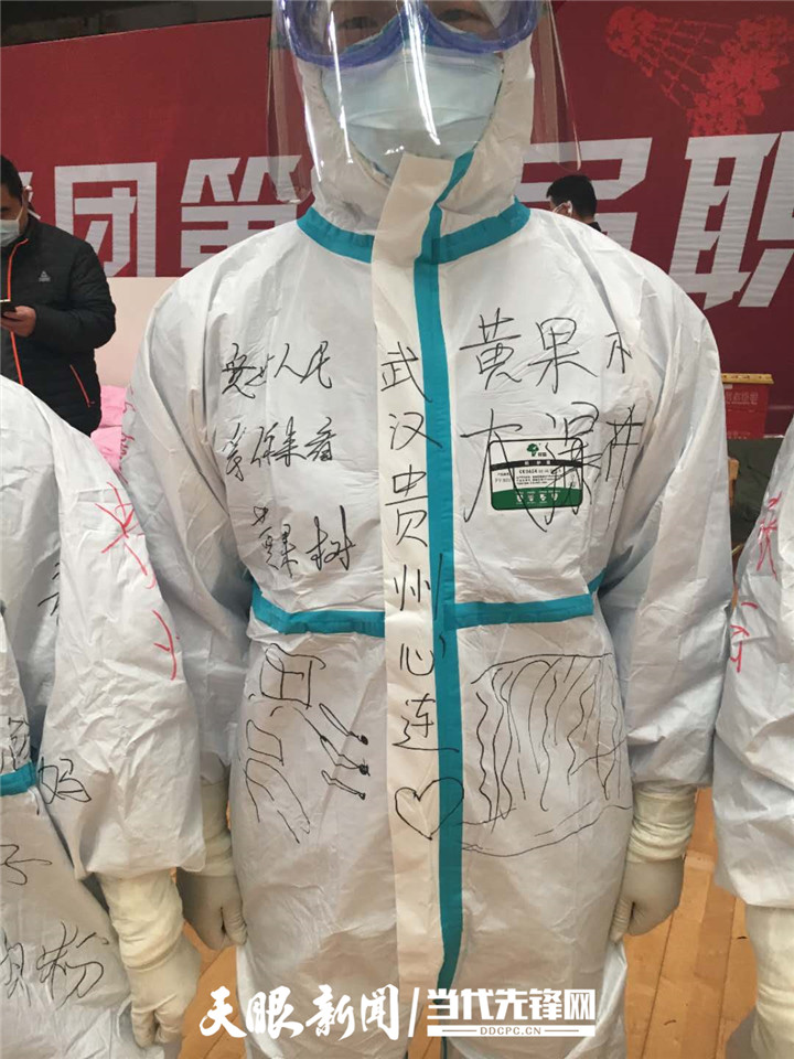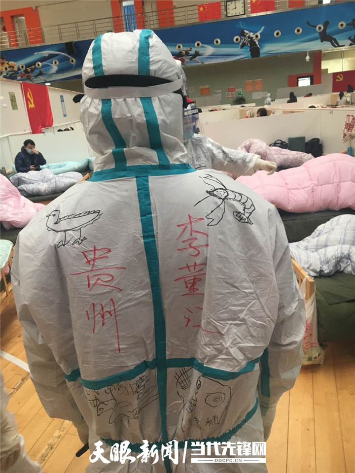 “我们的防护服是不是很漂亮?这都是患者给我们画的。”国家紧急医学救援队(贵州)队员、beat365唯一官方网站附属医院心内科护士李董江笑嘻嘻地告诉记者,昨天他们跟患者来了一场别开生面的涂鸦赛,让武汉涂鸦和贵州涂鸦来了一次生动的“碰撞”。
