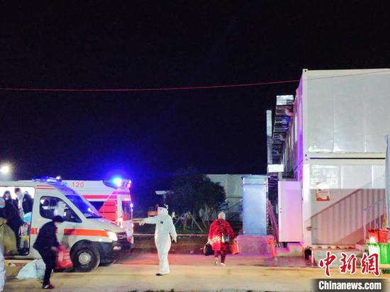 新冠肺炎患者抵达雷山医院二期工程。 石小杰 摄