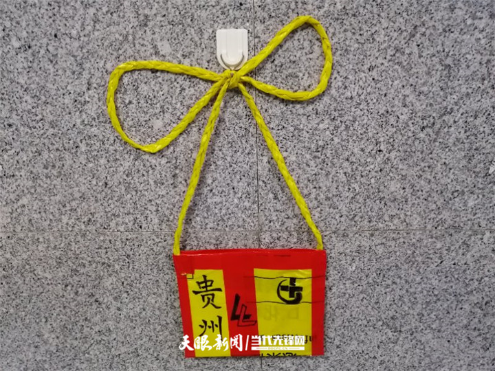 “有了包包,我就想再做个袋子更方便些。”心灵手巧的李小旦巧用现有材料再给“手机包”编了两条“带子”做背带,既实用又美观。