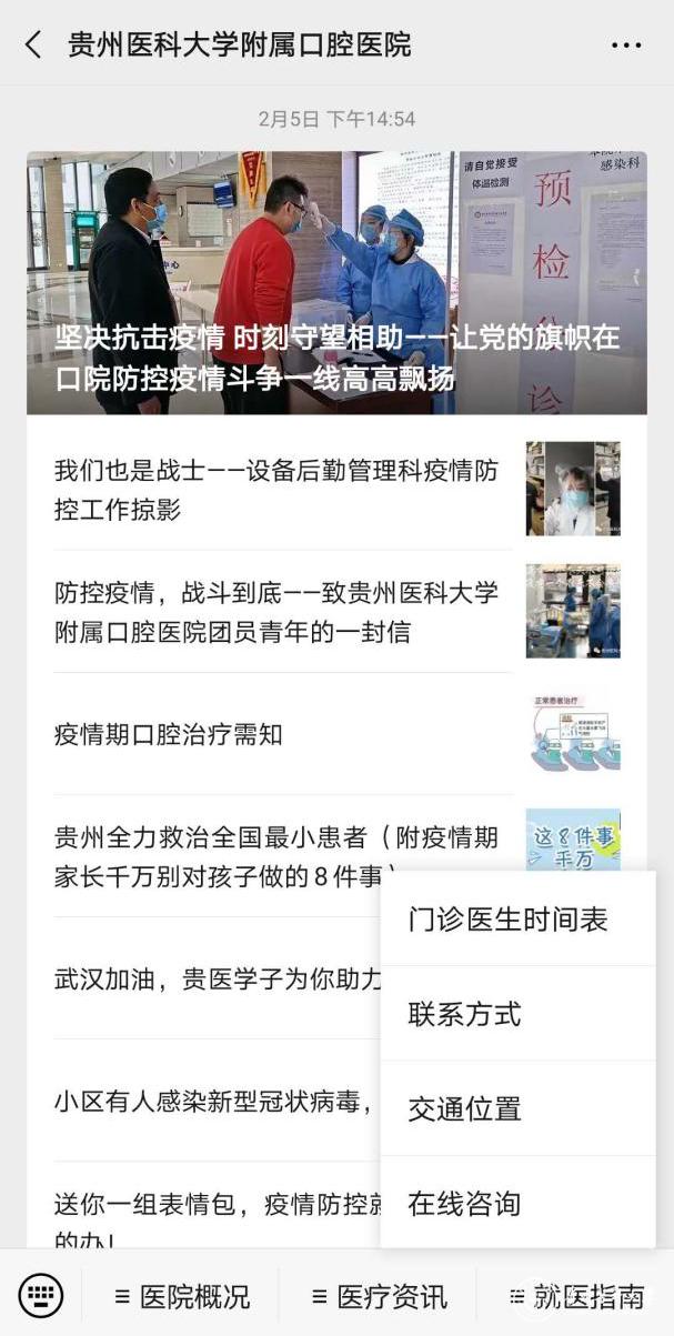 患者通过本院微信公众号,点击底部功能栏【就医指南】-【在线咨询】