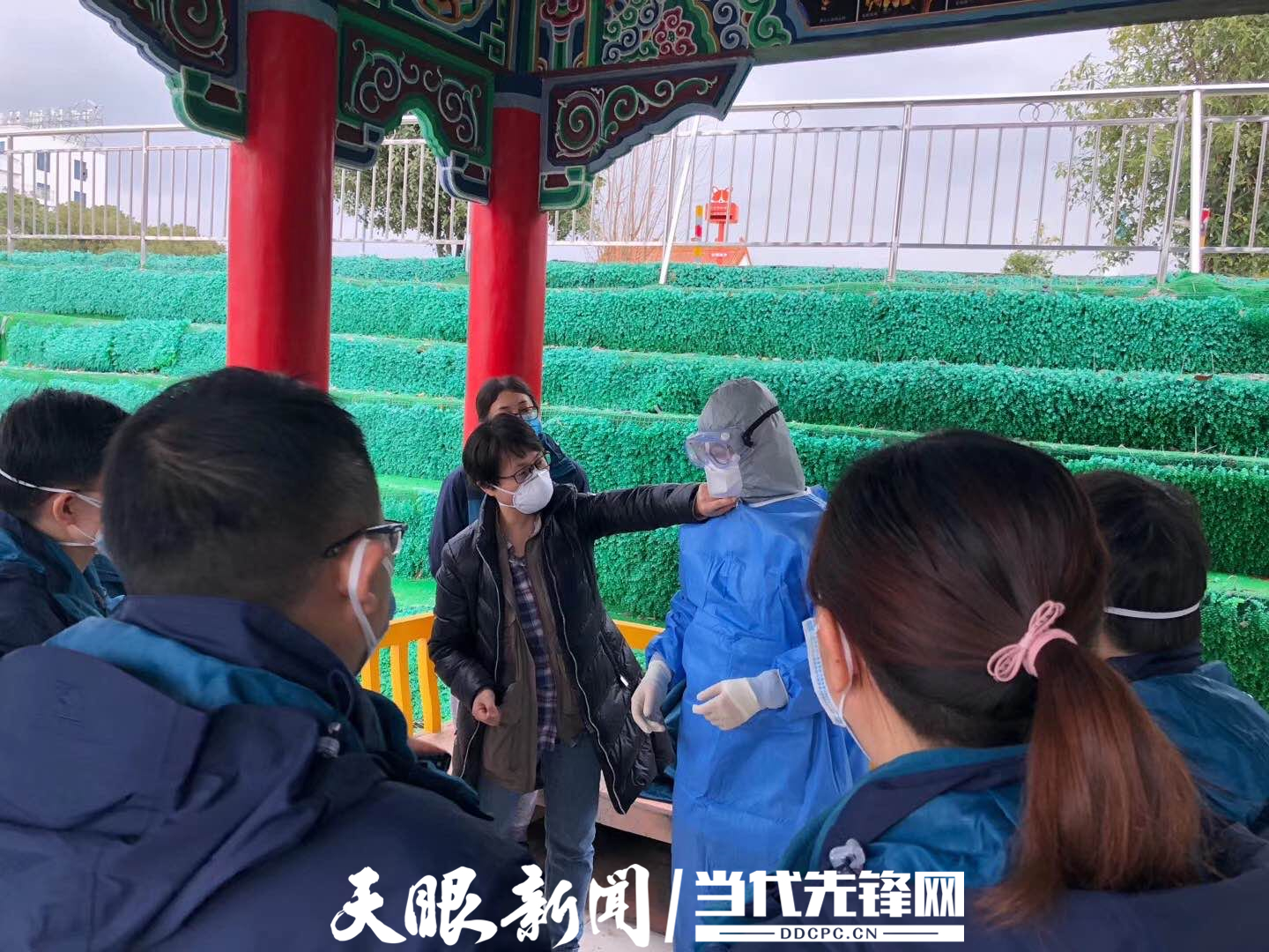 程玉梅指导队员穿脱防护服