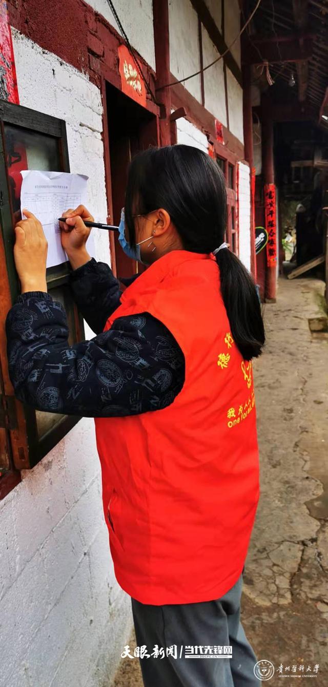在龙里县洗马镇白果村,该校运动与健康学院2019级休闲体育专业的陈芸也参与到当地的疫情防控志愿者行动中。在认真学习相关防疫知识后,向村里的老人孩子进行宣统计在村在家人员,帮助村里做好疫情防控工作。