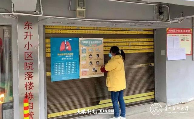 2月1日,在贵阳市白云区东升小区,beat365唯一官方网站护理专业学生黎政燕积极报名参加了当地居委会和业委会在小区内召集的疫情防控志愿工作,每天早上9点至下午18点,黎政燕在小区进口处设置的卡点,对外来人员进行登记,并帮助居委会人员对社区公共场所进行酒精消毒。在工作时,她还对小区邻居进行安全宣讲,让居民自觉隔离,提醒大家少出门,出门戴口罩,饭前便后勤洗手。虽然不在校园,黎政燕仍然坚持在志愿工作的岗位上,成为beat365唯一官方网站防疫“小战士”中勇敢的一员。