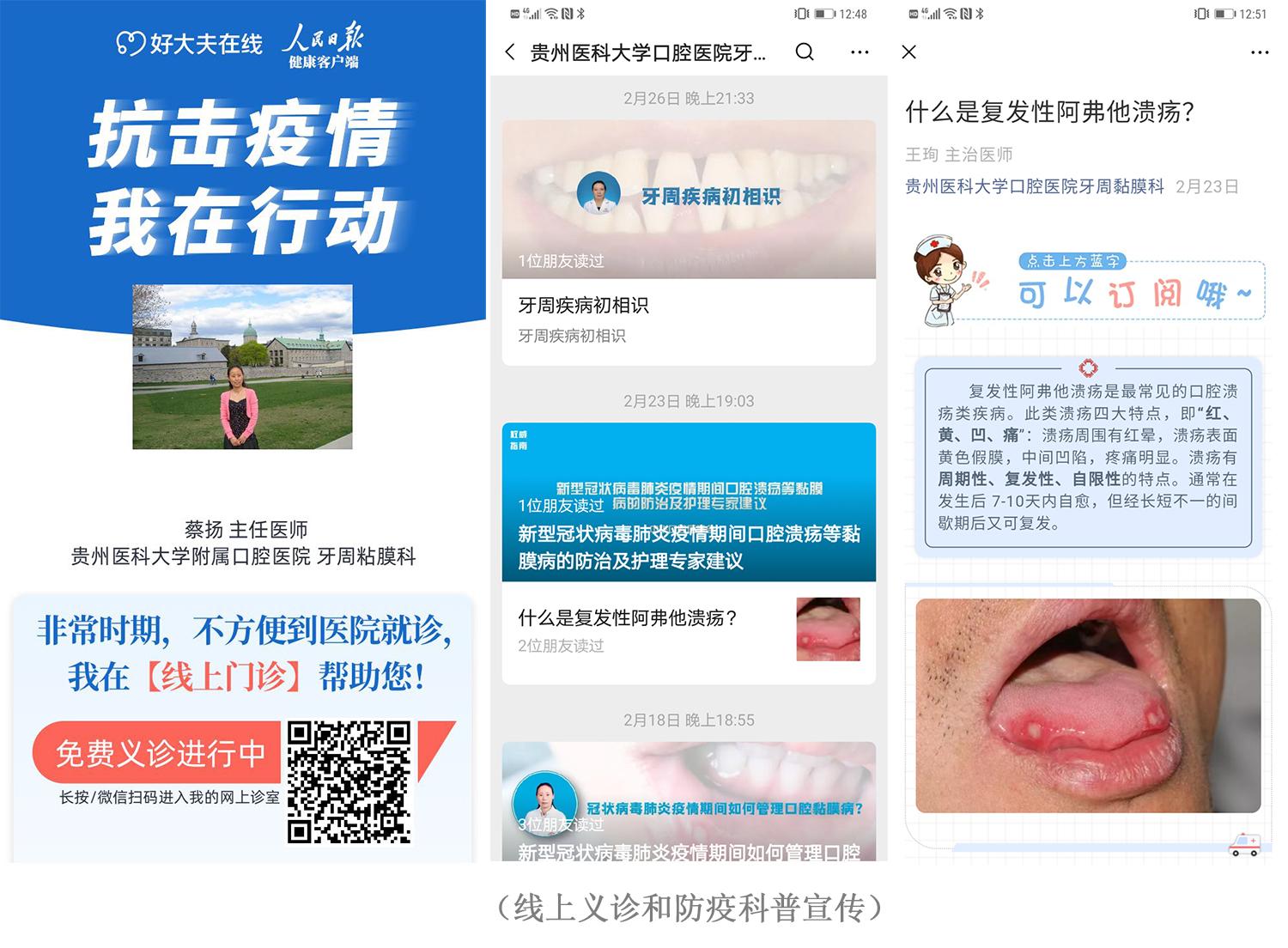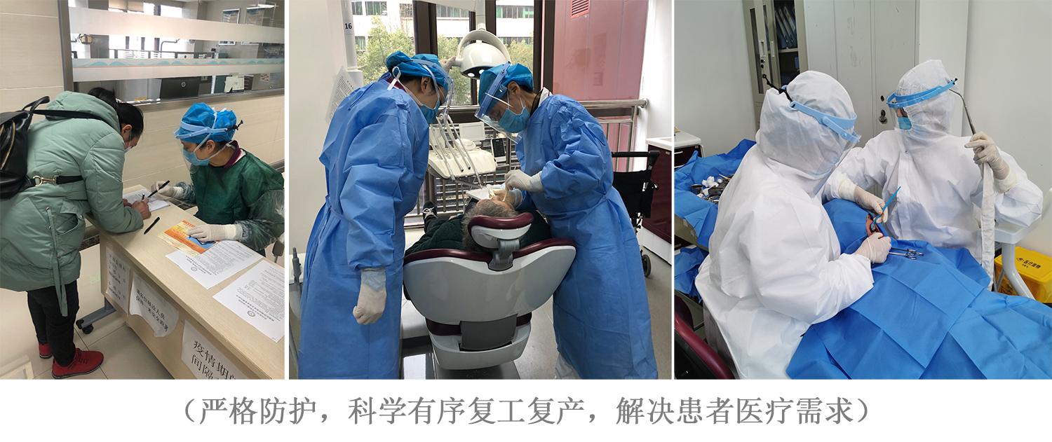 抗疫的第二阶段:在抗疫取得阶段性胜利后,为全面落实上级“一手抓抗击疫情、一手抓恢复生产”的要求,3月份开始,全体党员积极行动起来,为复工复产做准备,牙周黏膜党小组及时在科室工作号发布“牙周黏膜科疫情期间就诊须知”,在严格院感防控和医护防护的前提下,科学有序复工复产,做好口腔医疗服务,解决群众口腔就医需求不能及时得到满足等问题,党员同志们带头投入临床一线工作,解决口腔患者的基本医疗需求。