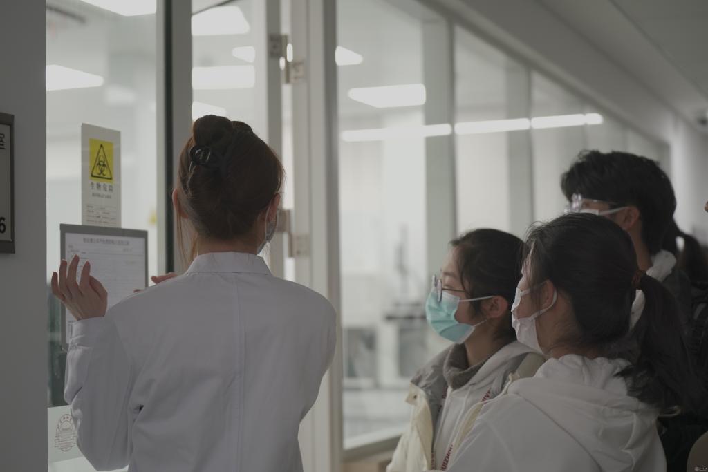随后,师生一行来到协和医院转化医学实验中心,近距离参观国内最顶尖的医疗科技,学习了解前沿科研仪器的操作和科学的实验管理。