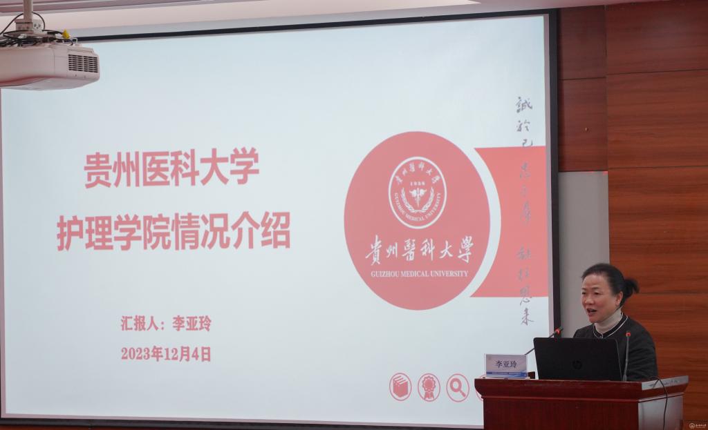 beat365护理学院院长兼附属医院护理部主任李亚玲介绍学院发展情况,希望通过此次交流活动进一步推进学校护理学科的高质量发展。