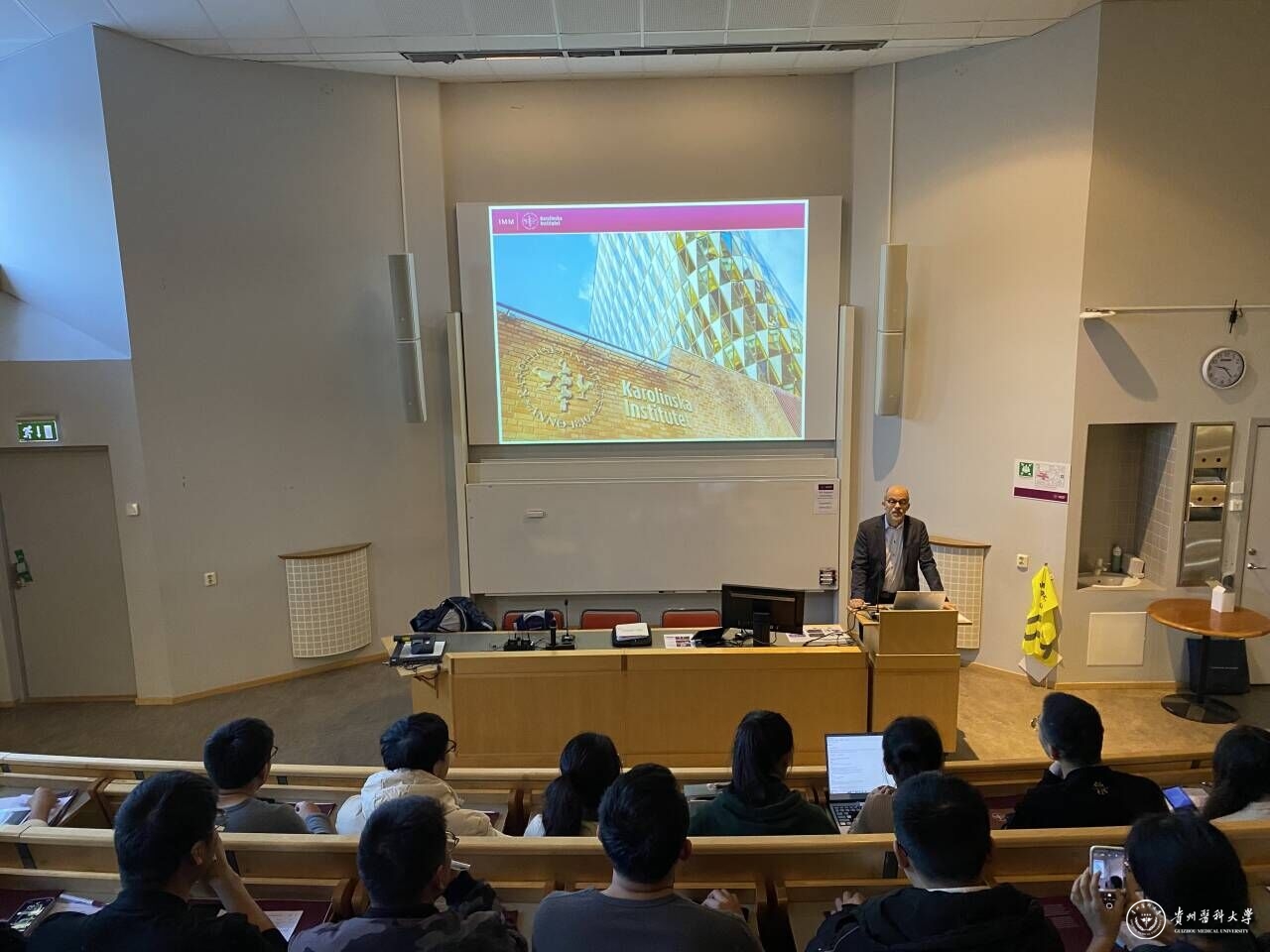 仪式后,卡罗林斯卡学院著名教授、诺贝尔生理学或医学奖评选委员会委员、欧洲科学院院士Maguns Ingelman Sundberg教授为同学们作药物代谢和药物遗传学方向讲座。讲座结束后,同学们参观了卡罗林斯卡学院及其附属医院。