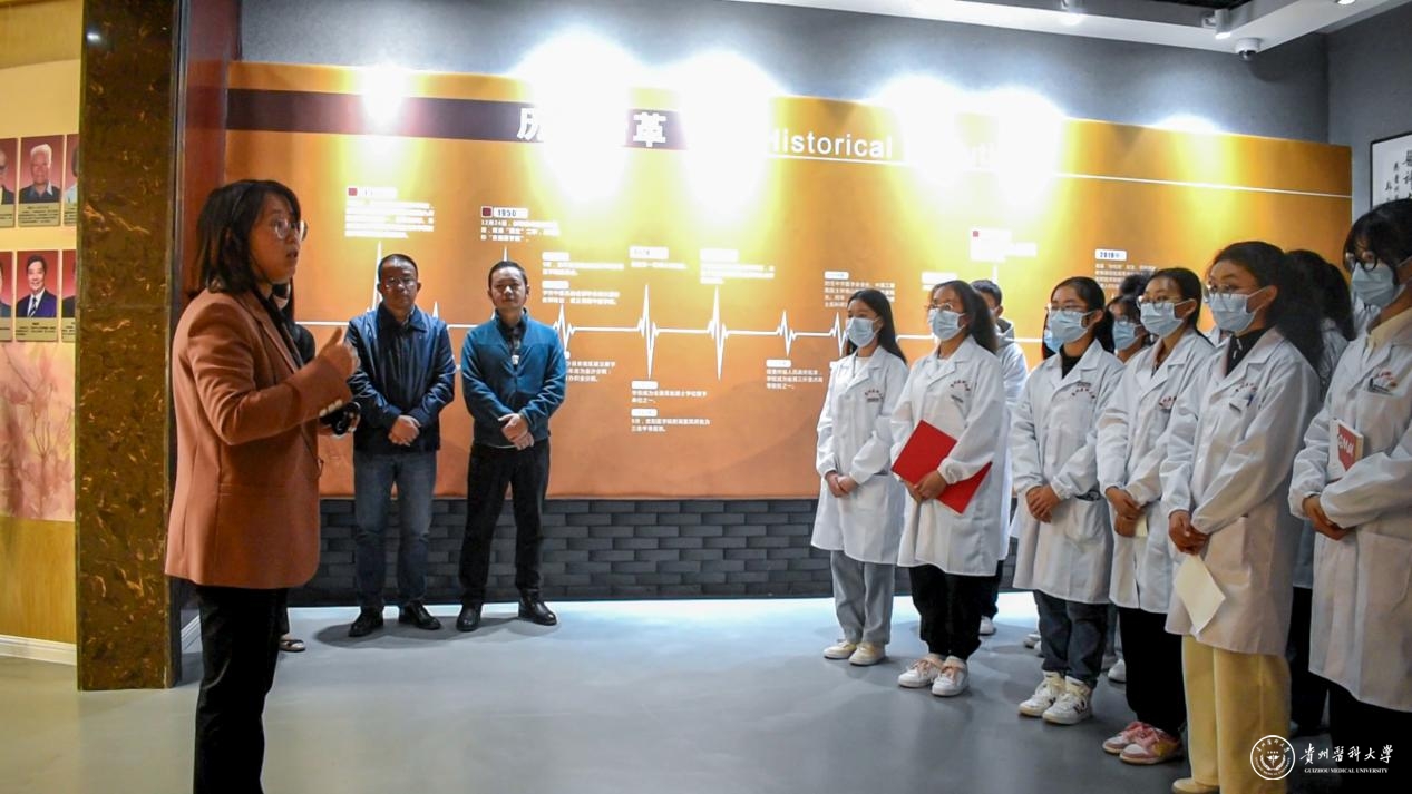 在校史馆,师生们在讲解员的讲解下,一起重温贵医历史沿革,体味校史底蕴,感悟“诚於己,忠于群,敬往思来”校训精神,开启一场沉浸式追忆学史盛宴。
