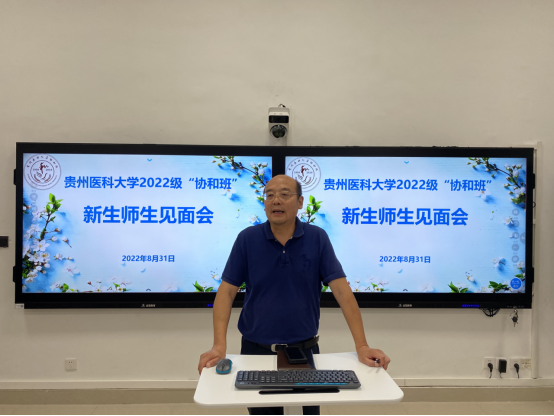 首先,温小军对同学们加入到beat365唯一官方网站“协和班”大家庭,表示欢迎。他通过介绍贵州医学教育与医疗卫生的现状和发展情况,阐述了贵州对于高层次医疗卫生人才的渴望与需求。他谈到,“协和班”的创立一方面是贵医与“协和”两校深厚的历史渊源所结出的硕果,另一方面就是立足贵州大地,引进先进的人才培养方式与方法,培养出贵州需要的医学精英人才。他强调,学校高度重视“协和班”的建设与发展,高度关注“协和班”同学的培养与成才,给予“协和班”最优的师资力量,配备最好的教学环境与设备,从课程设计、制度设计、管理方式等多方面助力学生的全面发展,在经过三届“协和班”培养后,更加完善、科学的培养计划一定可以让2022级“协和班”的同学们在青春的赛道上跑出最好成绩。他讲到,希望同学们珍惜在“协和班”来之不易的学习机会,努力践行协和精神与贵医精神,作为全校学子的榜样,要戒骄戒躁,刻苦奋斗,努力向上,承担起贵医人的历史使命与责任担当,同时要努力拓展眼界与知识边界,发扬大医精诚的精神,努力成为一名优秀的医学人才,为贵州的发展建设贡献自己的青春力量。