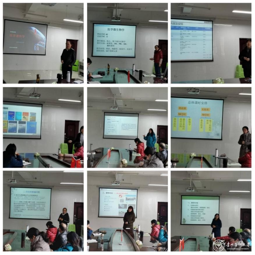 《医学遗传学》《医学微生物学》《人体寄生虫学》《基础医学综合实验》《人体解剖学》《组织胚胎学》《基础实验技能训练》《有机化学》授课教师先后从授课内容的整体构思、理论框架、重难点、思想政治教育与专业教育有机融合、时间安排、组织教学方法等方面进行介绍。参会教师就在教学过程中如何合理安排各门课程的学习时间、如何将基础与临床有机结合、如何培养临床思维,注重过程性评价和考核方式的多样化,特别是针对新增加的思政育人元素和目标展开讨论,提升了大家对课程思政理念的认识。