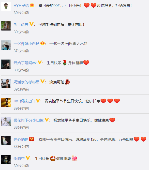 网友们纷纷为袁隆平送上生日祝福