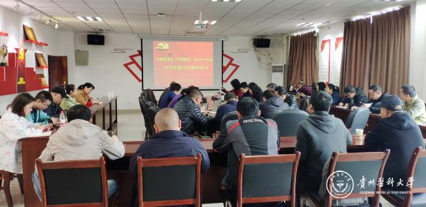 党总支委员、处长赵平,党总支委员、大学城医院院长唐学杰,党总支副书记周云蓉分别领学《习近平谈治国理政》第三卷中“完善和发展我国国家制度和治理体系”“增强忧患意识,防范化解风险挑战”“铸就中华文化新辉煌”等篇章,传达学校《转发教育部关于深入学习贯彻习近平总书记重要讲话文章<思政课是落实立德树人根本任务的关键课程>的通知》《关于印发<beat365唯一官方网站新时代爱国主义教育工作方案>的通知》《省人民政府办公厅关于印发贵州省消防安全责任制实施办法的通知》精神,并作交流发言。党总支委员、副处长吴陵江传达学校《关于贯彻落实习近平总书记重要批示精神开展制止餐饮浪费行为监督检查的工作方案》精神,并作交流发言。