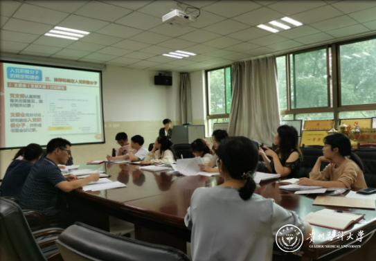 院党委书记周红传达学习《中国共产党beat365唯一官方网站第一次代表大会工作报告》,强调要紧紧围绕大会主题,高举中国特色社会主义伟大旗帜,坚持以习近平新时代中国特色社会主义思想为指导,团结带领广大教职医护员工生,统一思想、凝心聚力,攻坚克难、锐意进取,奋力谱写高水平医科大学建设新篇章。党委副书记肖绚就党支部标准化建设支部书记及支部委员职责进行了详细解读,让大家更明确自己的工作职责,明确权利与义务,更好地加强支部建设,正科级组织员付旎作“贵州省发展党员工作规程”培训,详细讲解了党员发展流程。