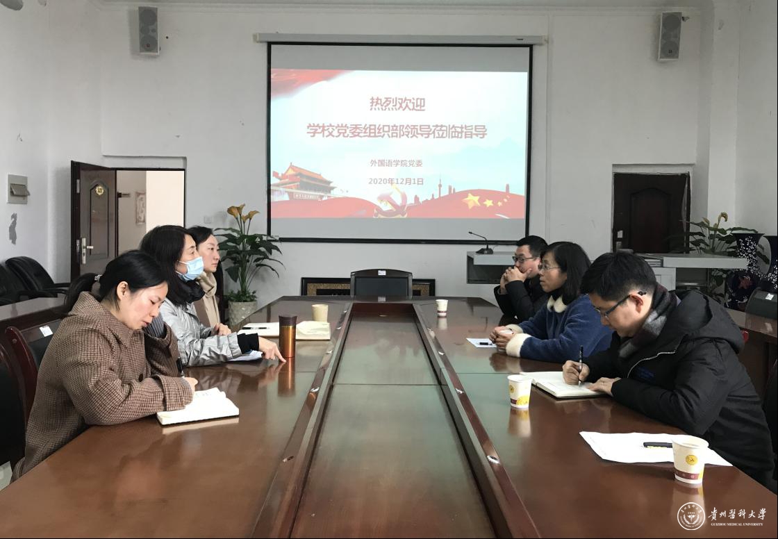 为深入贯彻落实新时代党的建设总要求,全面推进学校党支部标准化规范化建设,11月30日至12月2日,学校党委委员、党委组织部部长蒋红梅带领组织部工作人员走访学校各基层党委(党总支),调研阵地建设情况。