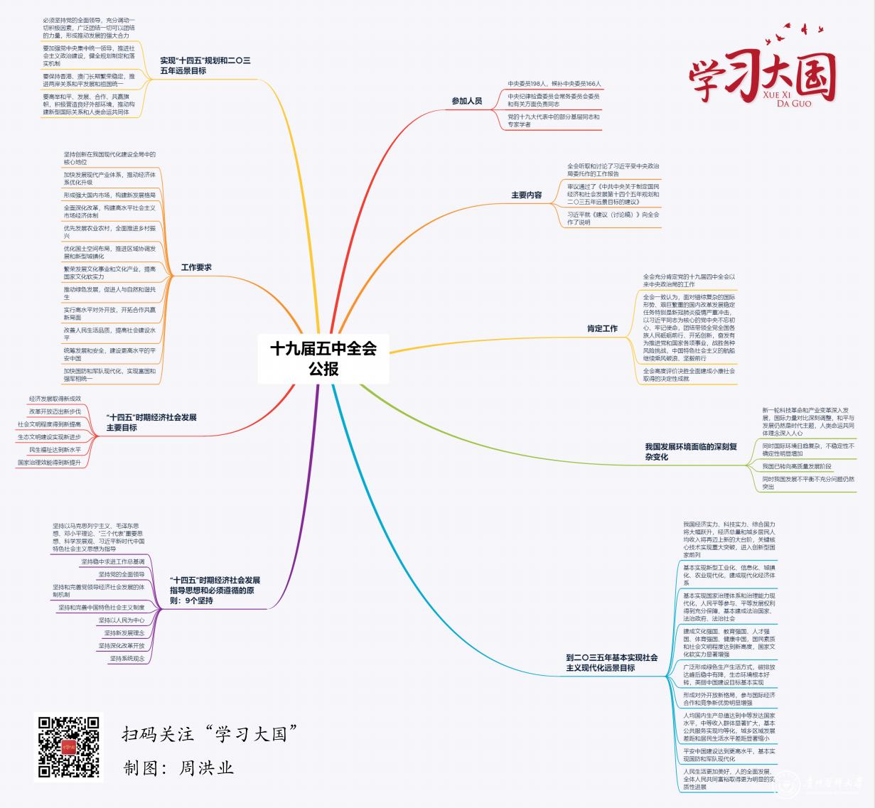 下面这张思维导图,带你一起学习6000余字的十九届五中全会公报。