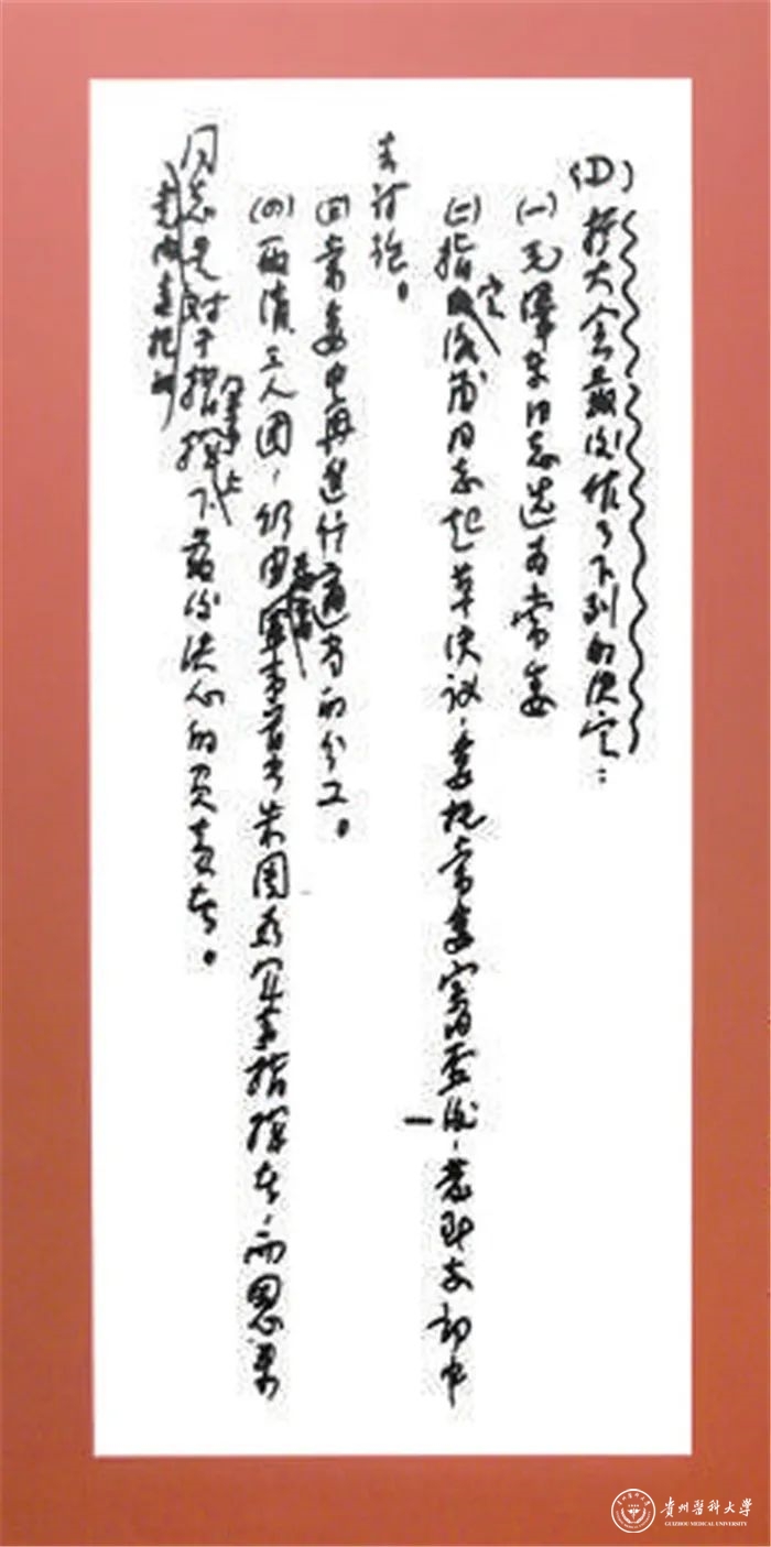 遵义会议的四条决定(手迹) 资料照片