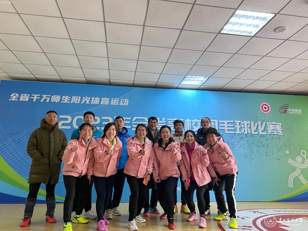 12月26日,2023年全省高校羽毛球比赛落下帷幕,本次比赛有来自全省41所高校750余名运动员参赛。beat365党委副书记、校长罗鹏,党委副书记汤磊,校党委委员、副校长蒋红梅率领14名教师运动员和10名学生运动员参赛。