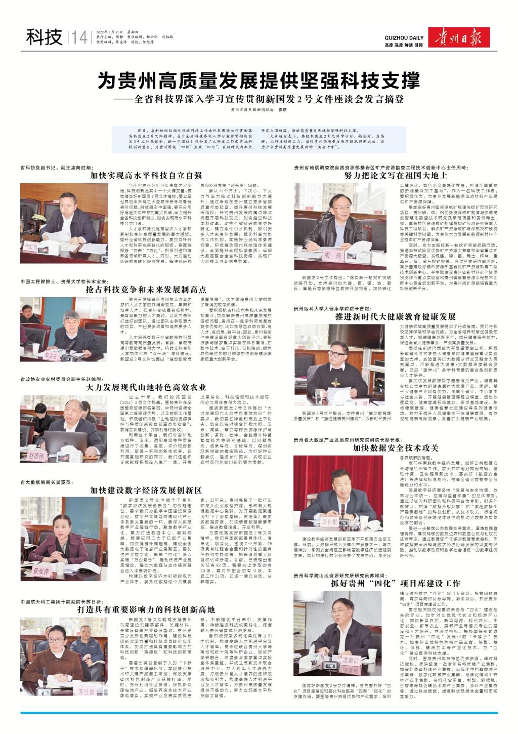 3月31日,《贵州日报》摘登大健康学院院长曹煜深入学习宣传贯彻新国发2号文件座谈会发言。