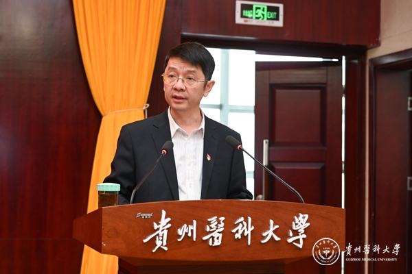 刘文在主持时表示,这次主题教育以全面贯彻习近平新时代中国特色社会主义思想为主线,要求我们必须全面系统掌握这一思想的基本观点、科学体系,把握好这一思想的世界观、方法论,坚持好、运用好贯穿其中的立场观点方法,不断推动高质量发展的要求同习近平总书记视察贵州重要讲话精神和对贵州工作重要指示批示精神相结合,始终做到牢记嘱托、感恩思进、感恩奋进,交出高分主题教育“贵医答卷”,为奋力开创新时代贵州高质量发展、现代化建设新局面,奉献贵医智慧和贵医力量。
