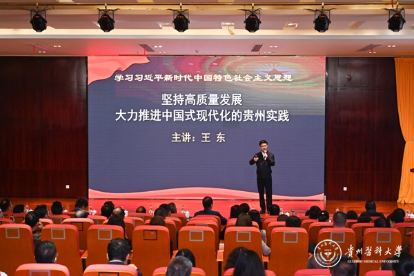 王东教授以《学习习近平新时代中国特色社会主义思想 坚持高质量发展 大力推进中国式现代化的贵州实践》为题,从“国际经济形势分析、中央经济政策分析、如何结合地方实际推动高质量发展”三个方面作辅导报告。王东教授从新颖的角度,以生动的讲授,结合贵州近年来的发展实际,深刻阐明推动高质量发展的重大意义、丰富内涵和实践要求,对beat365党员干部深入学习领会新时代党的创新理论,提供了重要参考和借鉴。