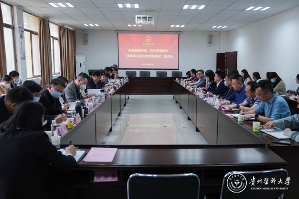 为深入开展学习贯彻习近平新时代中国特色社会主义思想主题教育,聚焦调查研究,推动学校高质量发展,5月19日,校党委副书记、校长罗鹏带队深入公共卫生与健康学院开展“高水平公共卫生学院建设”主题教育领题调研,校党委副书记刘文,校党委委员、副校长蒋红梅出席,学校相关职能部门负责人及重点实验室、贵州省卫生发展研究院、各党支部书记及科室负责人参加。