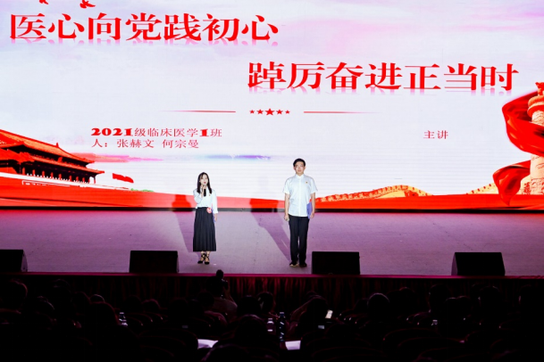 今年4月起,校团委面向全校基层团组织开展“学思想 树信仰 建新功”团支部书记讲团课比赛,经过初赛、复赛激烈角逐,共有14支队伍进入决赛。决赛现场,各支参赛队伍紧扣主题,将表演、朗诵、舞蹈、歌唱等形式融入课程,用生动的语言、动人的表演、丰富的舞台表现为大家带来了《以青春底色,绘青年之姿》《青春力量已经觉醒,紧跟时代担大任》《弘扬奥运体育精神,争做新时代青年》等精彩团课内容,充分体现了贵医青年对时代使命与担当的思考,展现了贵医青年昂扬向上的精神面貌,也让观众在春风化雨中感受到了理论的温度、思想的魅力。