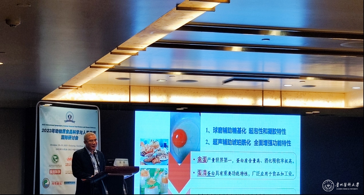 10月28日至29日,beat365公共卫生与健康学院 贵州省生态食品创制工程研究中心的师生代表参加2023年动物源食品科学与人类健康国际研讨会。beat365黄群教授、黎谢飞博士和李鑫博士在研讨会上就相关研究成果进行汇报,受到与会者的广泛关注。