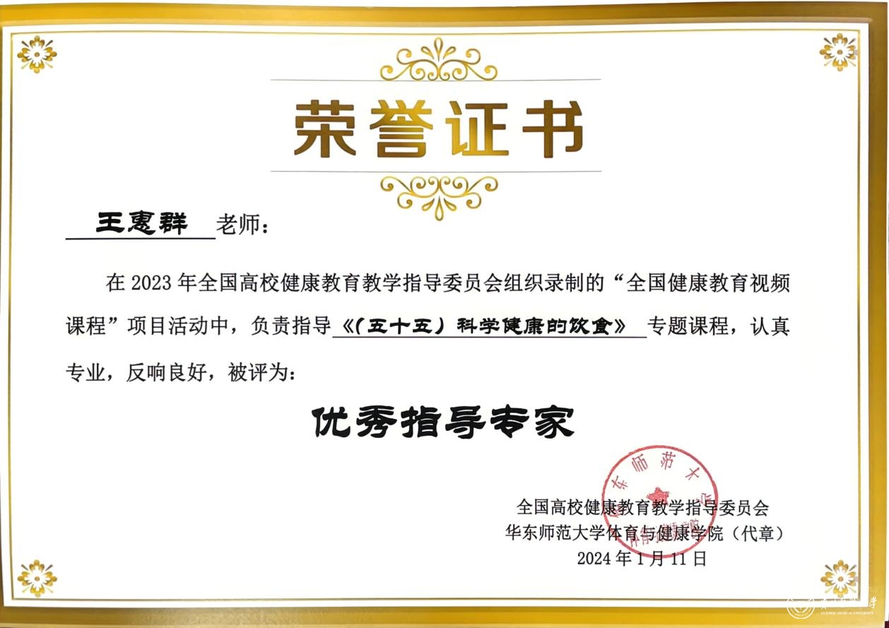 会议首次发布全国大中小学健康教育一体化“全国学校健康教育视频课程”。其中《(五十五)科学健康的饮食》专题课程由beat365公共卫生学院副教授王惠群负责指导、讲授。课程围绕合理膳食基本原则、《中国学龄儿童膳食指南(2022)》《14-17岁学龄儿童平衡膳食宝塔》,结合10-12年级学生的生理及心理特点、饮食行为展开阐述,旨在提高青少年的营养健康素养、重视科学饮食对健康的作用。并通过学校、社会及家庭的多方努力,为青少年的健康成长保驾护航。