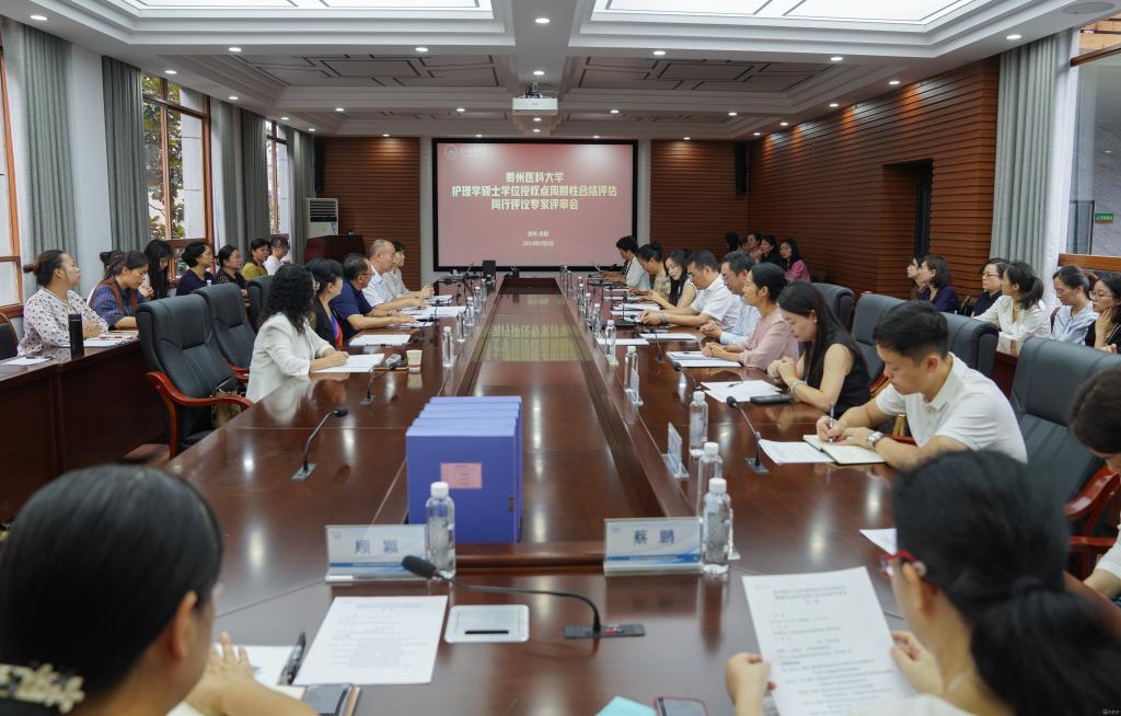 护理学院院长李亚玲作护理学一级学科硕士学位授权点周期工作自评汇报。专家现场查阅相关资料,并与师生代表座谈了解情况。经过专家评议工作会讨论,评审专家现场宣读了评议意见,并对护理学科的建设和发展给予指导。