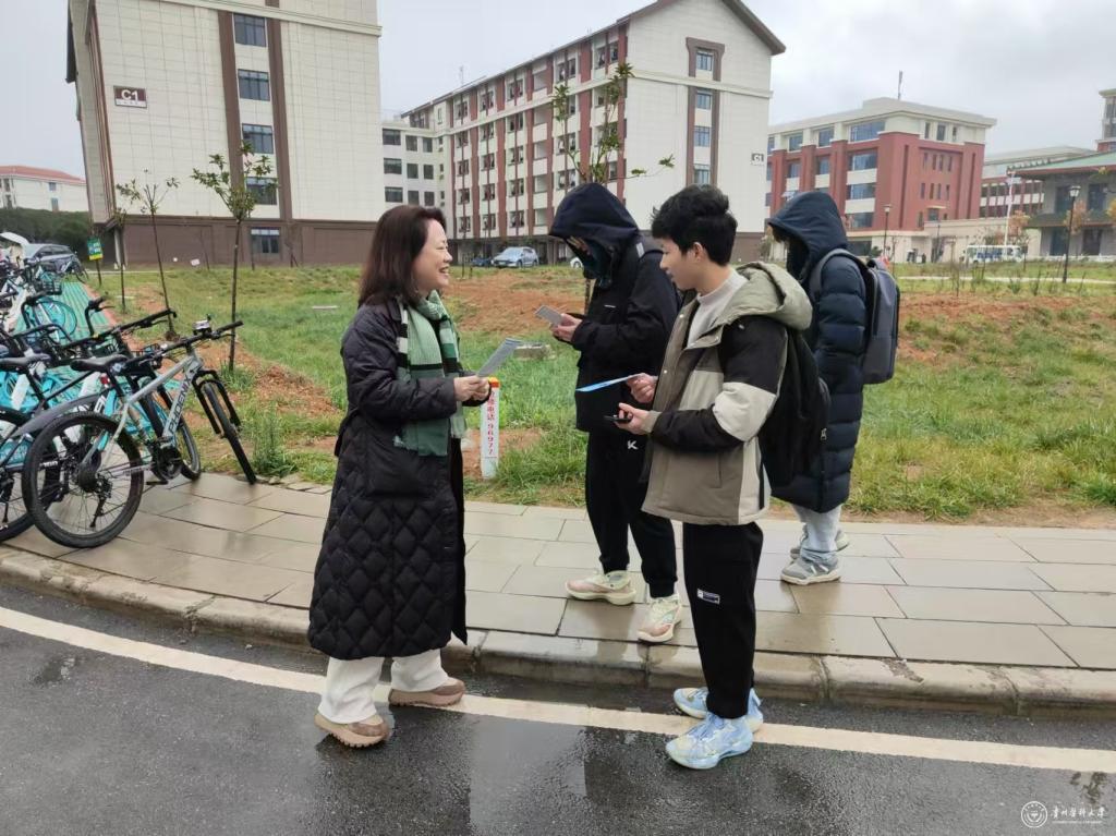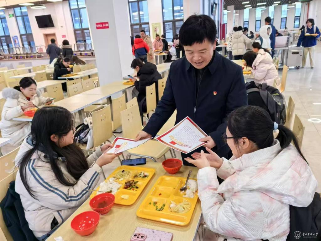 宣讲结束后,洪峰以普通党员身份参加后勤管理处党总支基层党支部、计信审计与实验动物中心党支部、财务与学报党支部联合开展的主题党日暨我为师生办实事活动。活动以“大力弘扬宪法精神·推动进一步全面深化改革”为主题,旨在强化党员干部们带头宣法学法责任担当,落实高校党组织普法主体责任,全面提升师生的宪法意识和法治素养。在云漫湖校区3号、4号食堂门口和用餐区,党员们以发放宣传单、面对面答疑等方式,带头宣传依法治校涵盖范围、提升学法、守法、用法、尊法意识,为师生们解答在校园学习、工作、生活中遇到的涉法涉规问题和实际困难等,推动宪法学习宣传走到师生身边,走进群众心里。