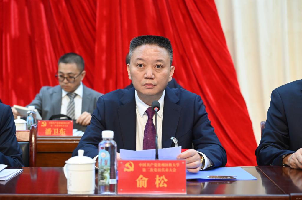 上午10时30分,大会在雄壮的国歌声中开幕,全体代表起立,奏唱中华人民共和国国歌。校党委书记汤磊代表中国共产党beat365唯一官方网站第一届委员会向大会作报告。校党委副书记、校长俞松主持开幕会。