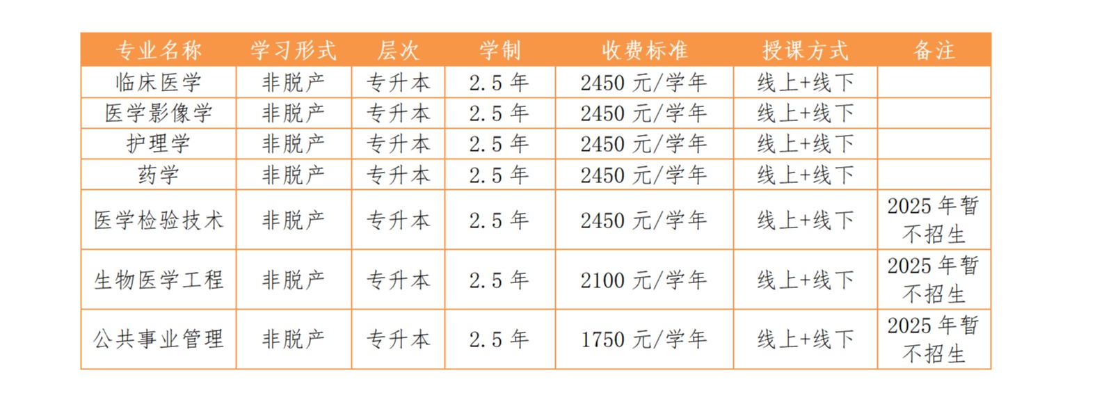 高等学历继续教育(成人高等教育)涵盖临床医学、护理学、医学检验技术、药学、医学影像学、生物医学工程、公共事业管理7个专业。